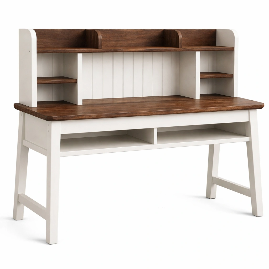 Escritorio de madera de caucho con MDF blanco y marrón 140cm x 60cm x 120cm
