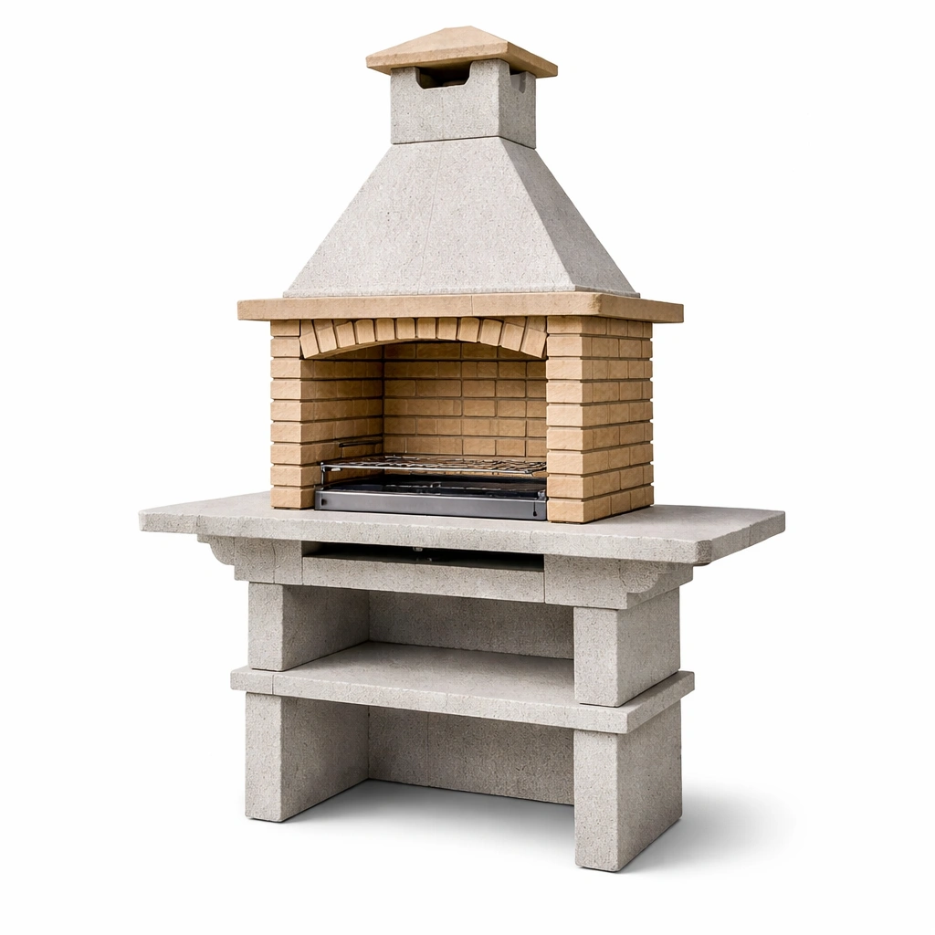 Componentes: Chimenea, grill y compartimento de almacenamiento.