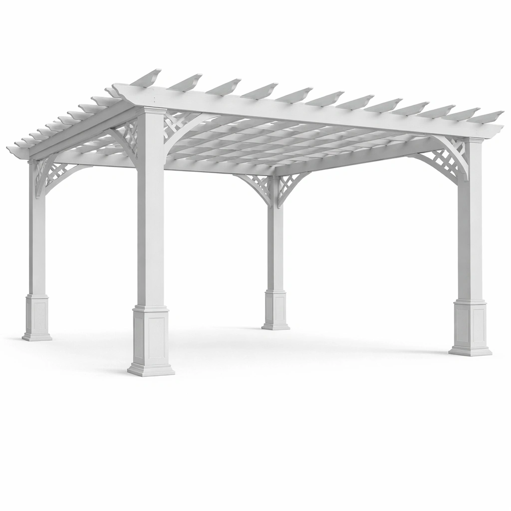 Esta pérgola está fabricada con vinilo duradero, adecuado para uso exterior y resistente a la intemperie.